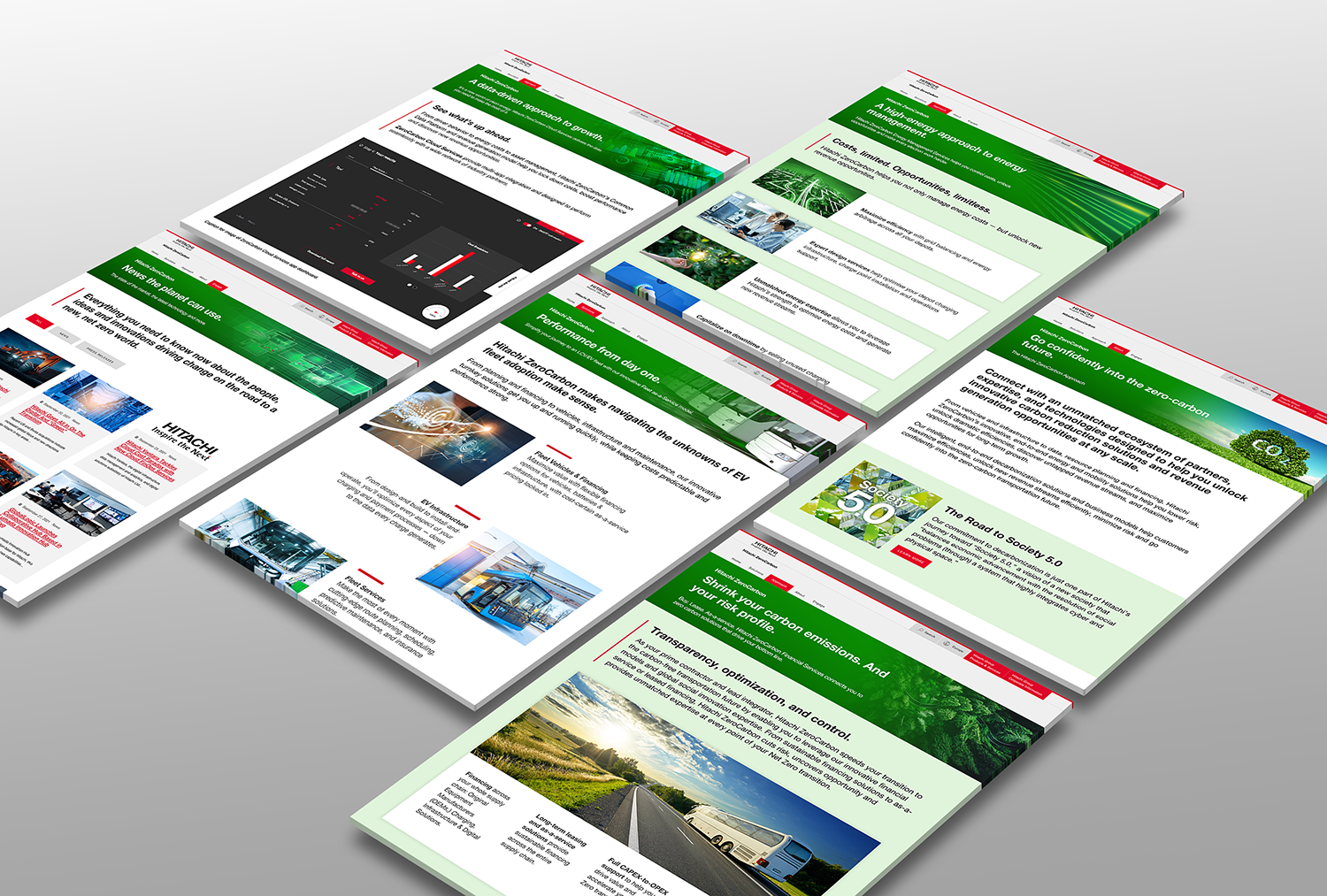 Collaborating with a team from Hitachi that included web producers, developers, and a brand officer, I designed the ZeroCarbon website, which included creating the hero video that Hitachi wanted to utilize, the design and layout of the homepage and inner pages, researching, selecting, and modifying stock imagery, building prototypes in Sketch, and A/B testing the beta sites with the production team.