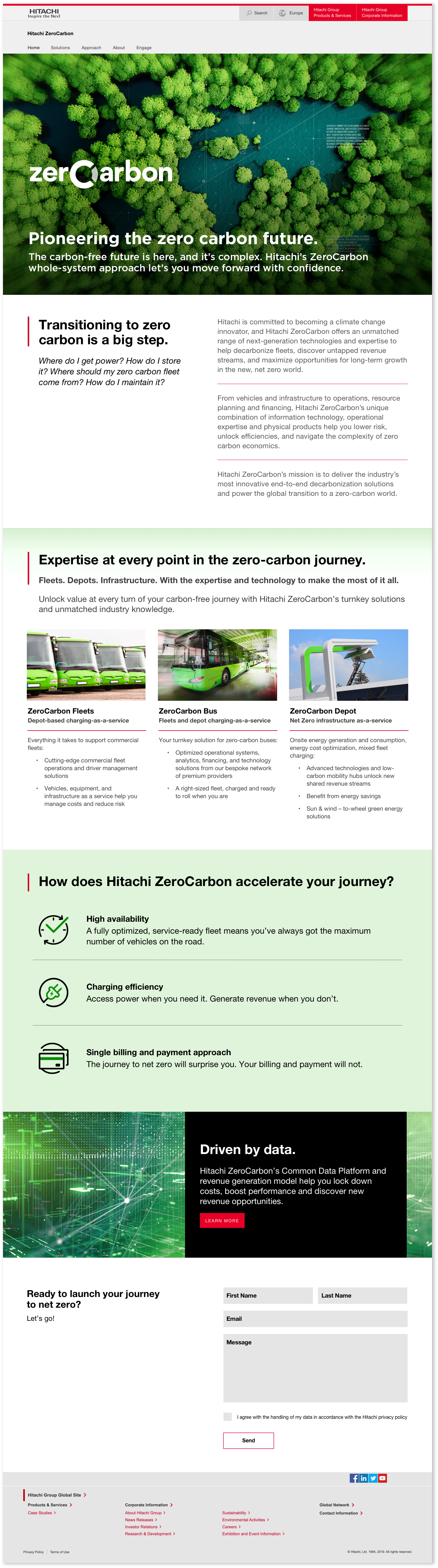 Hitachi is committed to becoming a climate change innovator, and the mission of Hitachi's ZeroCarbon initiative is to deliver the industry’s most innovative end-to-end decarbonization solutions and power the global transition to a zero-carbon world.