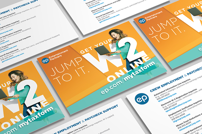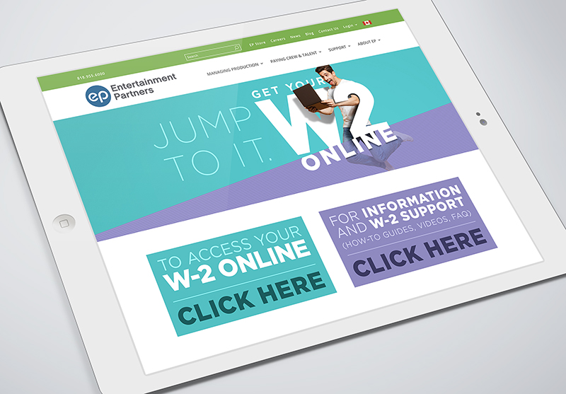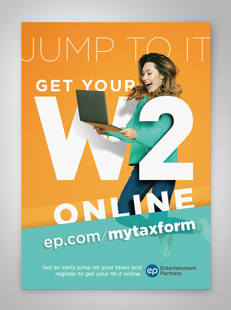 Entertainment Partners launched their Jump To It W-2 Campaign to bring awareness to their payroll clients to a sea-change in a process that was traditionally a cumbersome paper affair - acquiring a hard copy, filling it out, and snail-mailing it in on time - which is now available online, and can be processed and delivered within the time it takes to fill out the form.