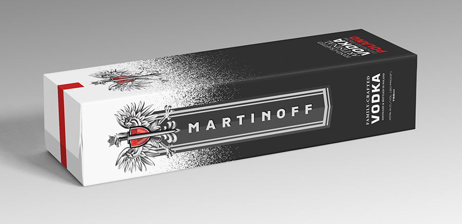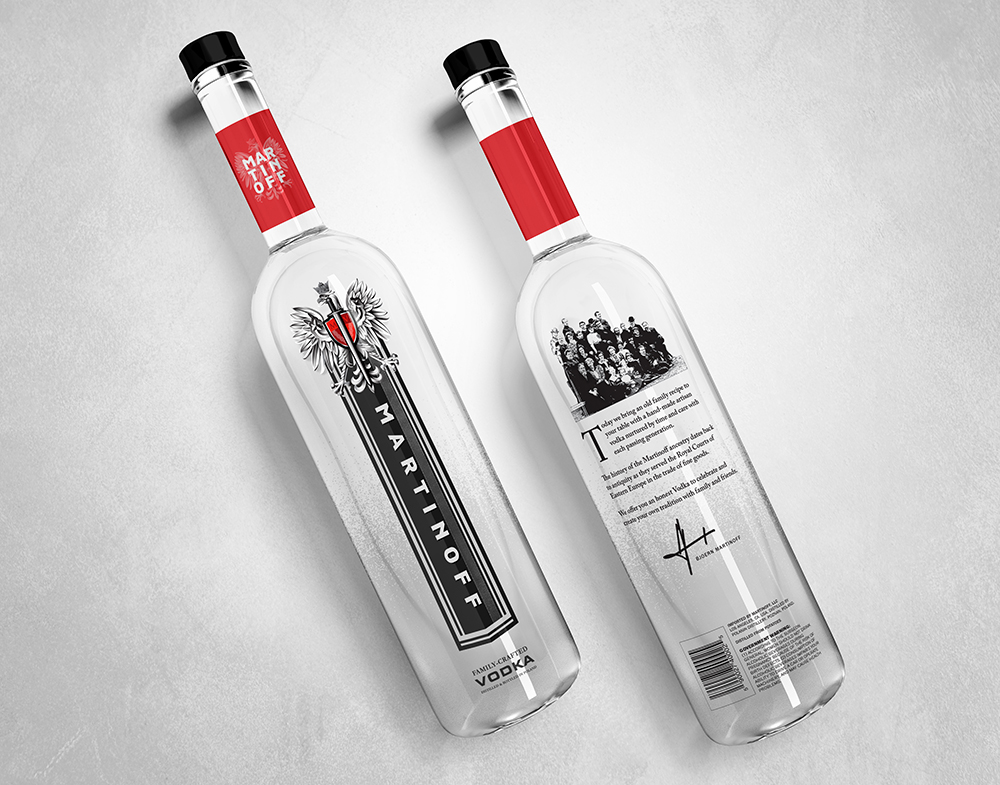 Martinoff Vodka was an artisanal spirit that was hand-crafted in Poland and imported to the United States, targeted to sell in higher-end retail shops. An early Martinoff family portrait taken in Poland, consisting of three generations, was used on the bottle, along with a brief history of the family-owned business.